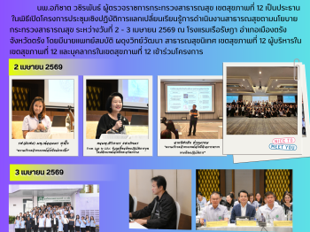 - ประกาศคณะกรรมการประเมินบุคคลฯ ลงวันที่ 2 มีนาคม พ.ศ. 2569 เรื่อง ไม่มีผู้สมัครเข้ารับการคัดเลือกเพื่อประเมินบุคคลเพื่อเลื่อนขึ้นแต่งตั้งให้ดำรง ตำแหน่งประเภทวิชาการ ระดับเชี่ยวชาญ ในสำนักงานปลัดกระทรวงสาธารณสุข (เขตสุขภาพที่ 12) 04/03/2569