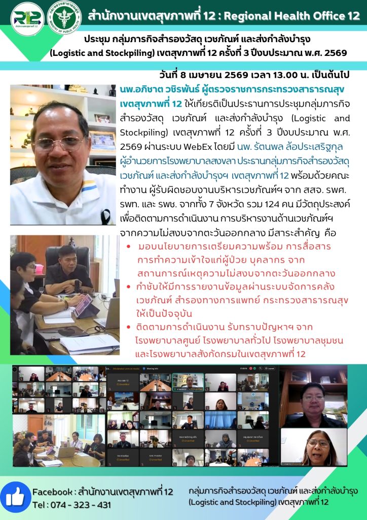สำนักงานเขตสุขภาพที่ 12 ประชุมกลุ่มภารกิจสำรองวัสดุ เวชภัณฑ์ และส่งกำลังบำรุง เขตสุขภาพที่ 12 ครั้ง 3 ปีงบประมาณ พ.ศ.2569